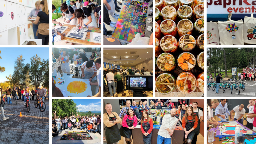 Wellbeing-ul se reflectă în activități care combină creativitatea, colaborarea și starea de bine, astfel încât participanții să plece mai ancorați și mai conectați între ei — o direcție perfect aliniată cu programele experiențiale Paprika Events.